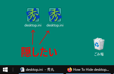これは邪魔なので、デスクトップにあるこのdesktop.iniを隠したいところです