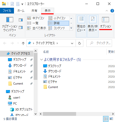 「フォルダーオプション」で上の画像のように設定するのがおすすめです。
