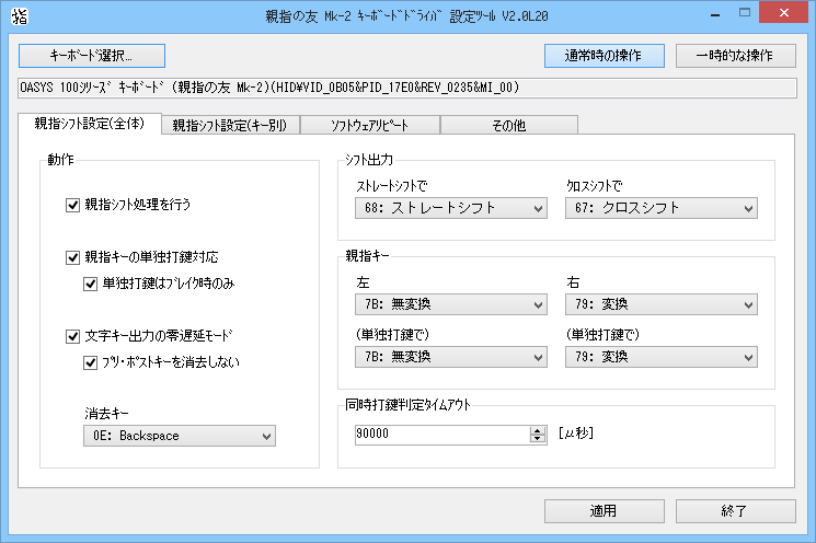 そこで、「親指の友 Mk-2 キーボードドライバ」では、新しく零遅延モードを導入しています。